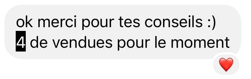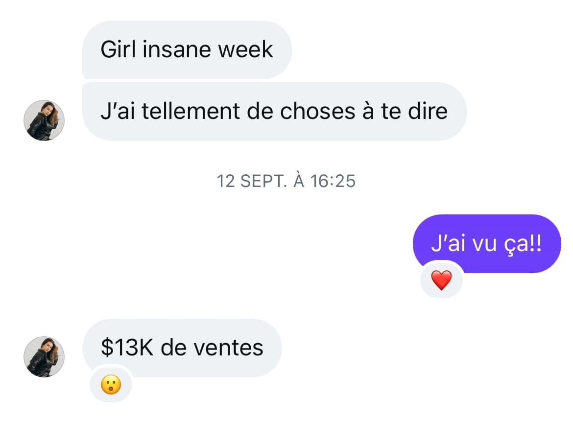 Ashley a fait 13k $ de ventes, sa 1ère vente sans parler à la personne avant et boost de ses stats (vues, commentaires et abonnés qualifiés)