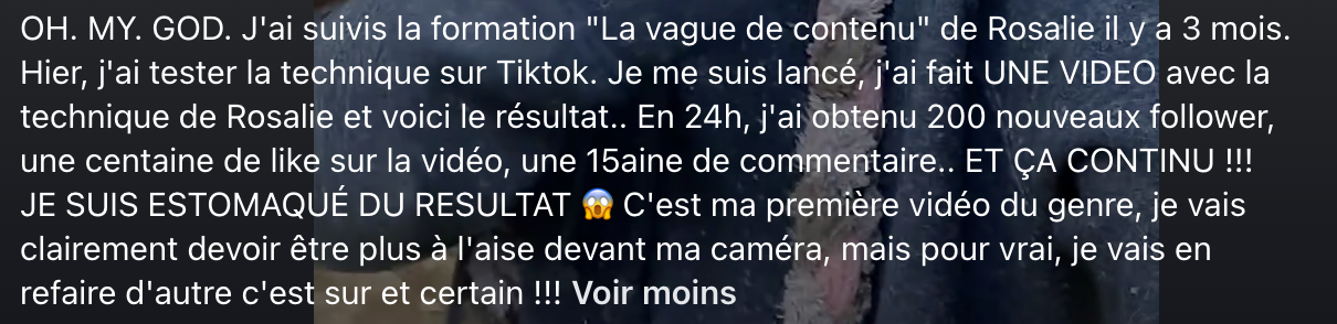 En suivant la formation à la lettre, tu devrais voir les premiers résultats 1 mois suivant la mise en place de vidéos quotidiennes.