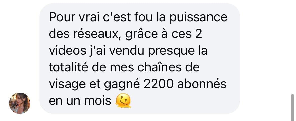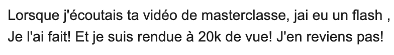 Et c'est justement ce qui m'a permises de gagner des centaines de milliers de vues, booster ma visibilité, gagner +800 abonnés avec 1 seule vidéo et signer des clients de rêves.