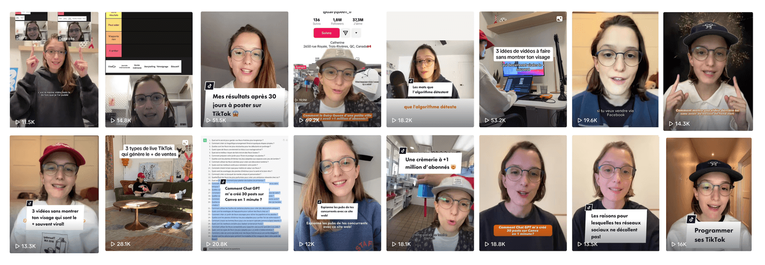 Sur des vidéos qui ont pris moins de temps à faire qu'un Canva et sans être obligé de se montrer!